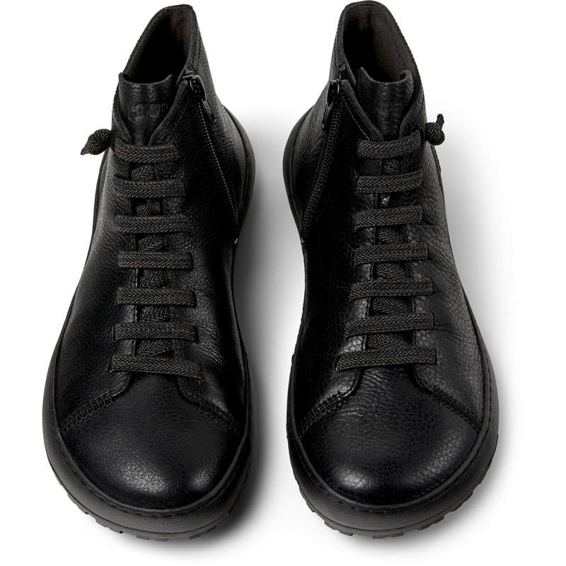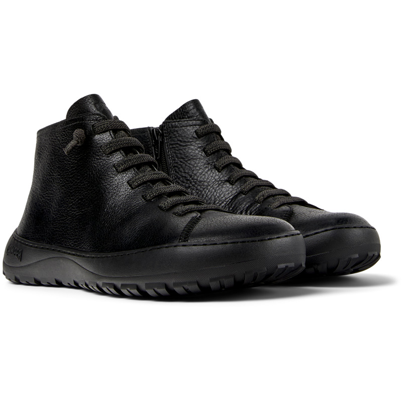 CAMPER - Zwarte kalfsleren dames-enkelboots met Uitneembaar EVA-voetbed, elastische veters en Vibram Ecostep-buitenzool (30% gerecyled).