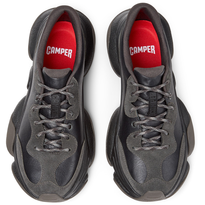 CAMPER - Zwart met grijze damessneakers van kalfsleer en kalfsleernubuck, met OrthoLite® Recycled™ voetbed, ReXarge® tussenzool en Vibram Ecostep-buitenzool (30% gerecyled).