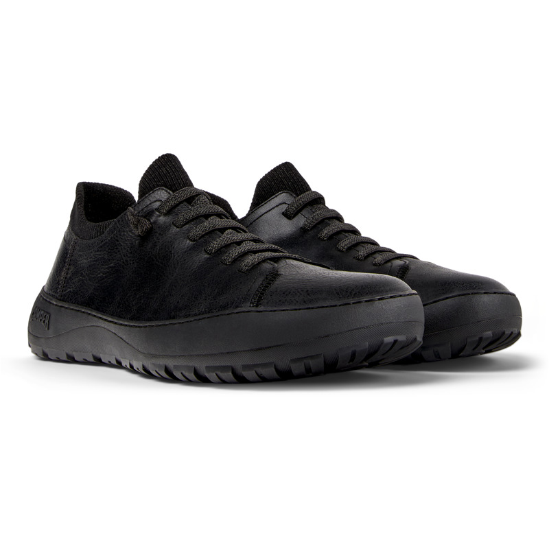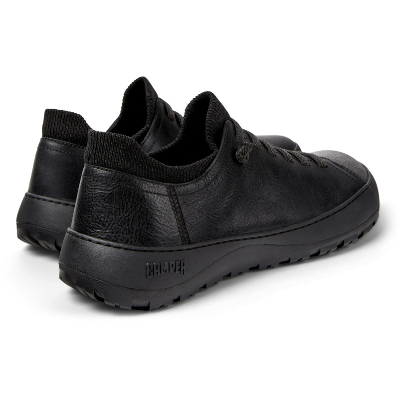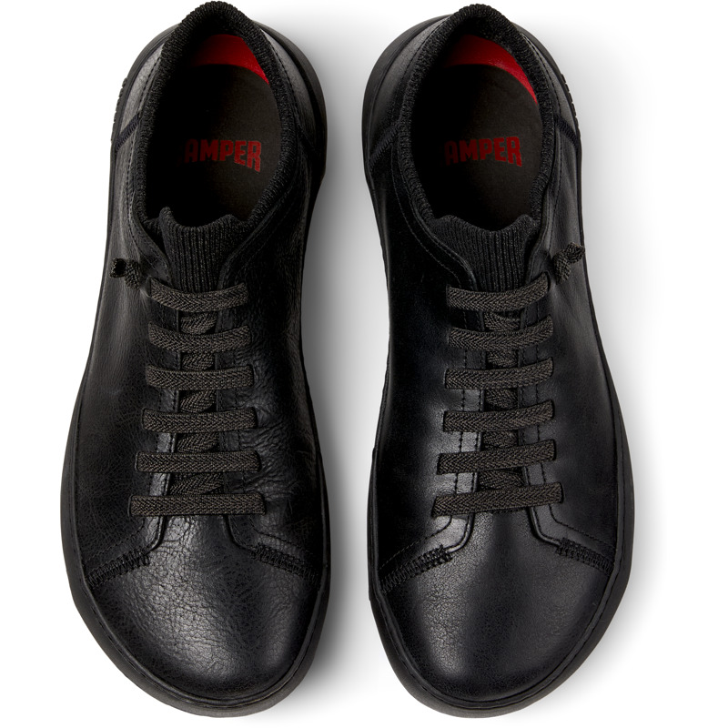 CAMPER - Zwarte herenschoenen van regeneratief kalfsleer en textiel, met easy-fit sok-binnenvoering, EVA-voetbed, elastische veters en Vibram Ecostep-buitenzool (30% gerecyled).