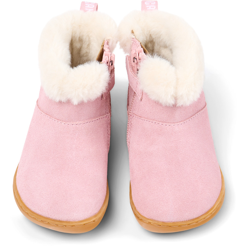 CAMPER - Pink nubuck kids' ankle boots with removable EVA footbeds and recycled rubber outsoles (20% recycled).