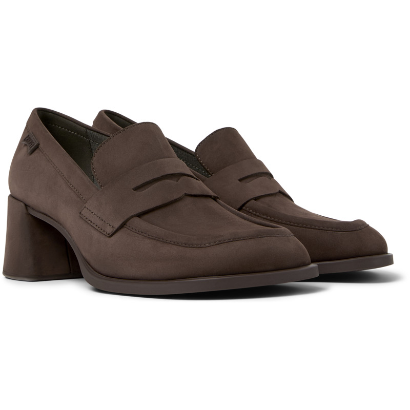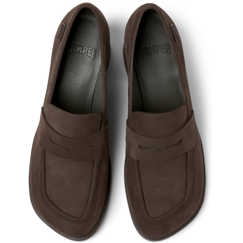 CAMPER - Brown nubuck moccasins for women with OrthoLite® Recycled™ footbeds and rubber and ABS outsoles.
