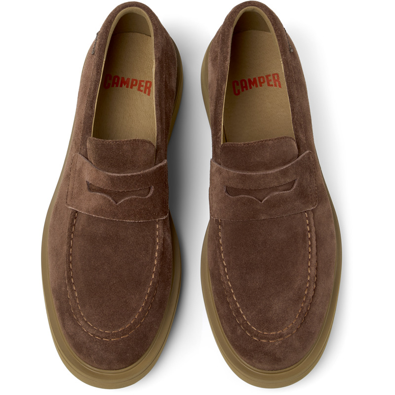 CAMPER - Brown calfskin suede shoes for men with XL EXTRALIGHT® EVA outsoles.