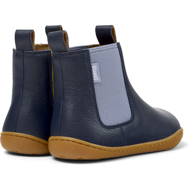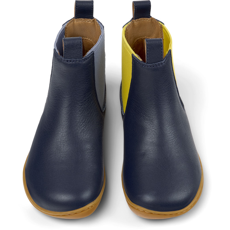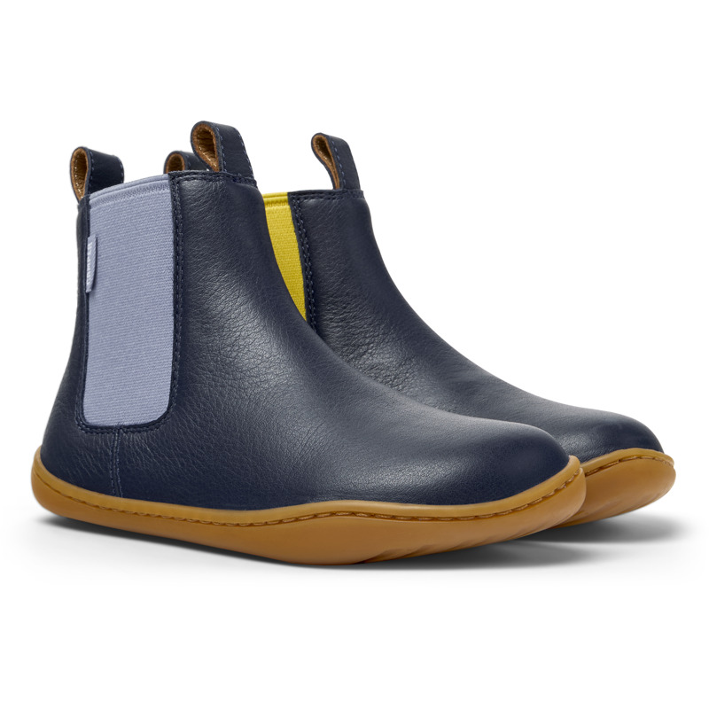 CAMPER - Blue calfskin leather kids' ankle boots with EVA footbeds and rubber outsoles.