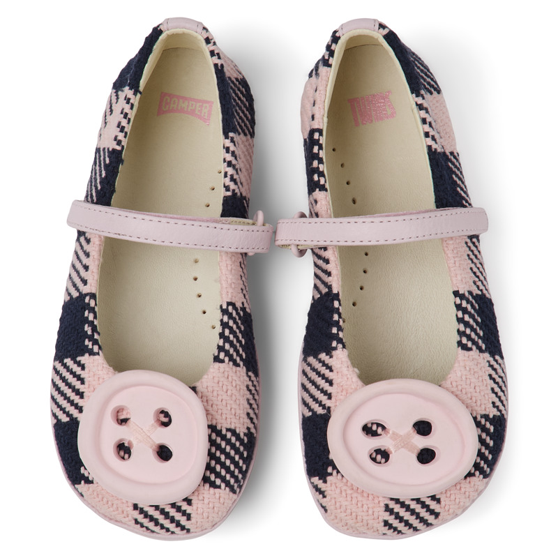 CAMPER - Pink and blue recycled cotton girls' ballerinas with hook-and-loop closing system and 100% rubber outsoles.
