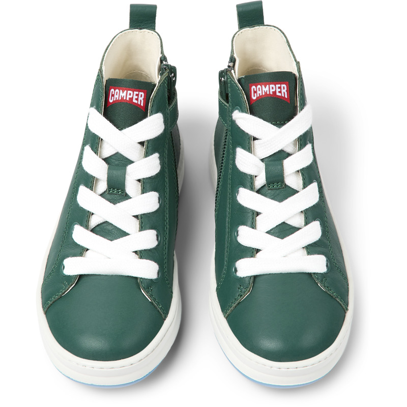 CAMPER - Green leather kids' sneakers with OrthoLite® Recycled™ removable footbeds and rubber outsoles.