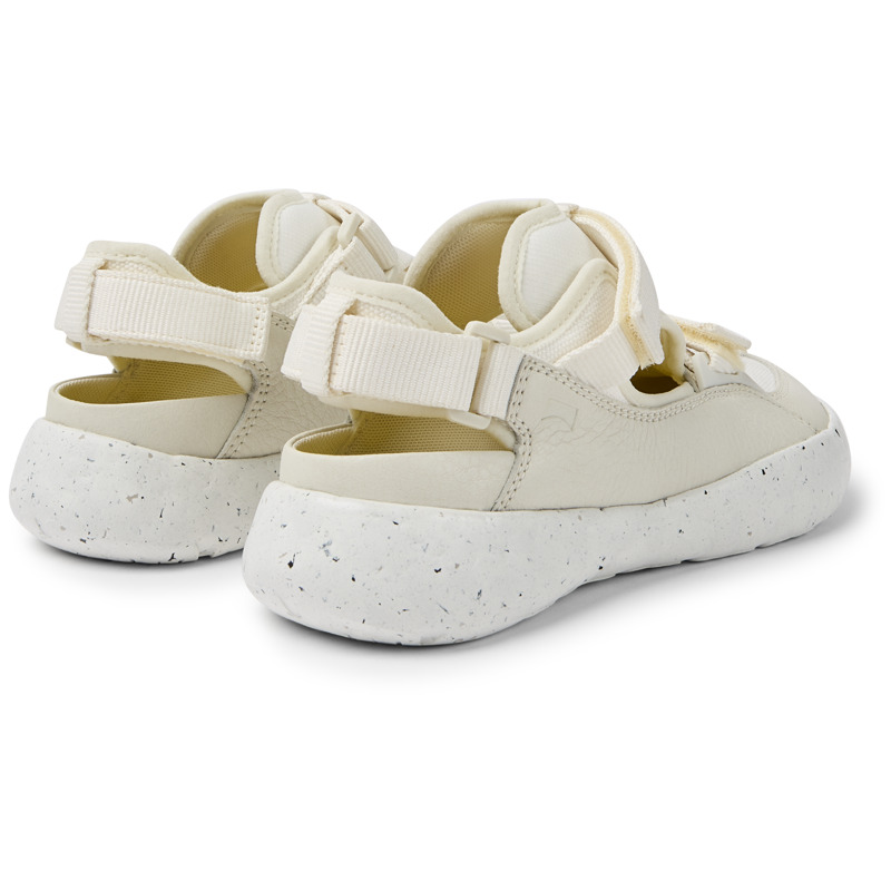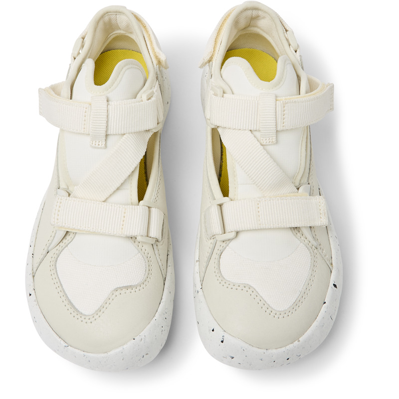 CAMPER - White recycled PET webbing, organic cotton, and leather women's semi-open sneakers with XL EXTRALIGHT® Sustainable outsoles (51% recycled EVA) and a hook-and-loop closing system.