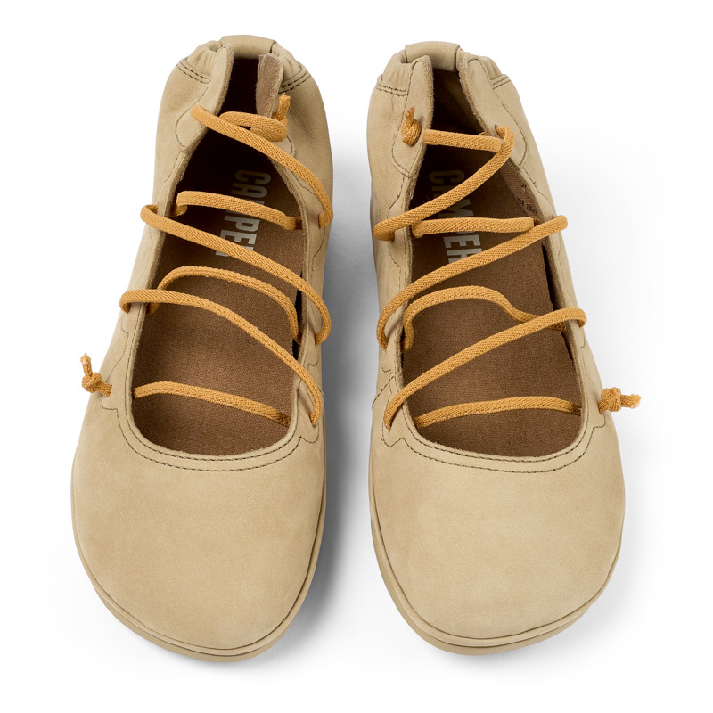 CAMPER - Beige leather women's lace-up shoes with EVA footbeds and rubber outsoles.