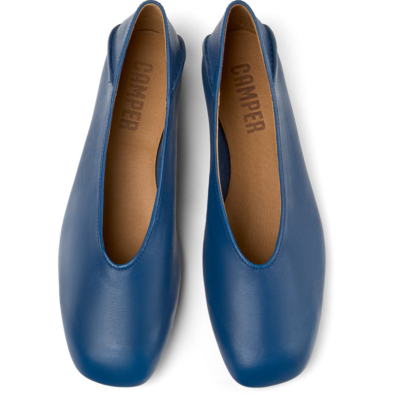 CAMPER - Blue leather women's ballerina flats with OrthoLite® Recycled™ footbeds and TPU outsoles (20% recycled).