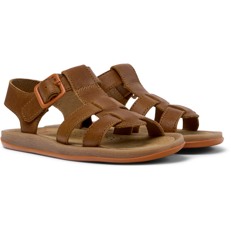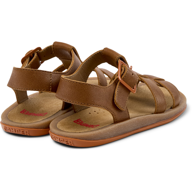 CAMPER - Brown leather kids' sandals with rubber outsoles (20% recycled).