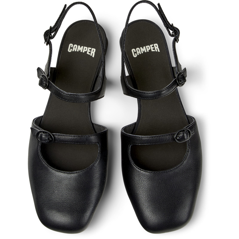 CAMPER - Black calfskin semi-open shoes for women with non-removable OrthoLite® Recycled™ footbeds and TPU outsoles (20% recycled).