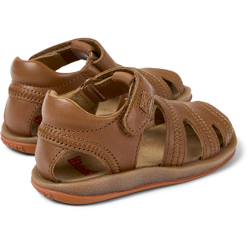 CAMPER - Brown leather kids' closed sandal with hook & loop system and rubber outsoles (20% recycled).