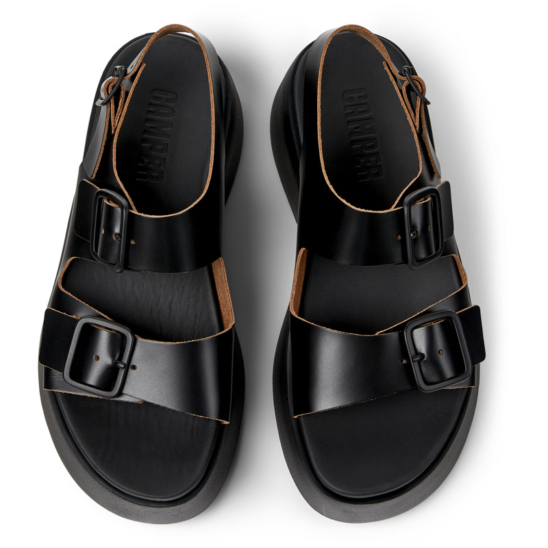 CAMPER - Black calfskin leather women's sandals with EVA footbeds and XL EXTRALIGHT® EVA outsoles.