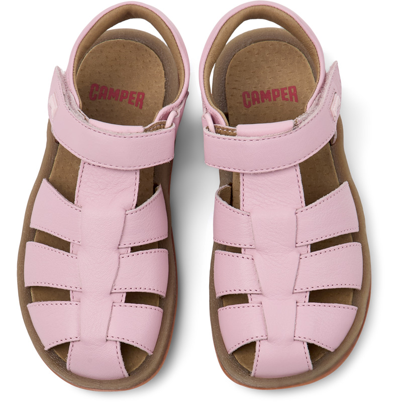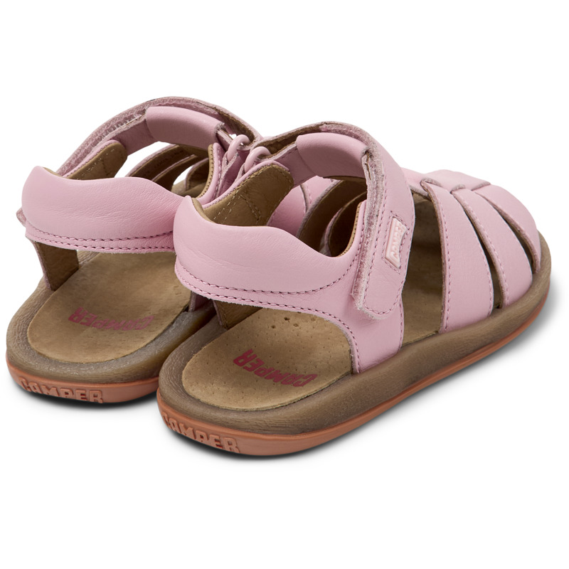 CAMPER - Pink leather kids' closed sandal with hook & loop system and recycled rubber outsoles (20% recycled).