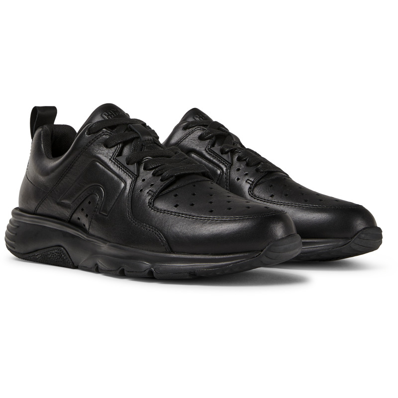 CAMPER - Black leather women's sneakers with 70% EVA and 30% rubber outsoles.