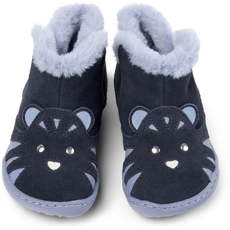 CAMPER - Blaue und weiße Kinderstiefeletten aus Rindsleder und Nubukleder mit herausnehmbarem EVA-Fußbett, Klettverschluss und Laufsohle aus recyceltem Gummi (20% Recyclinganteil).