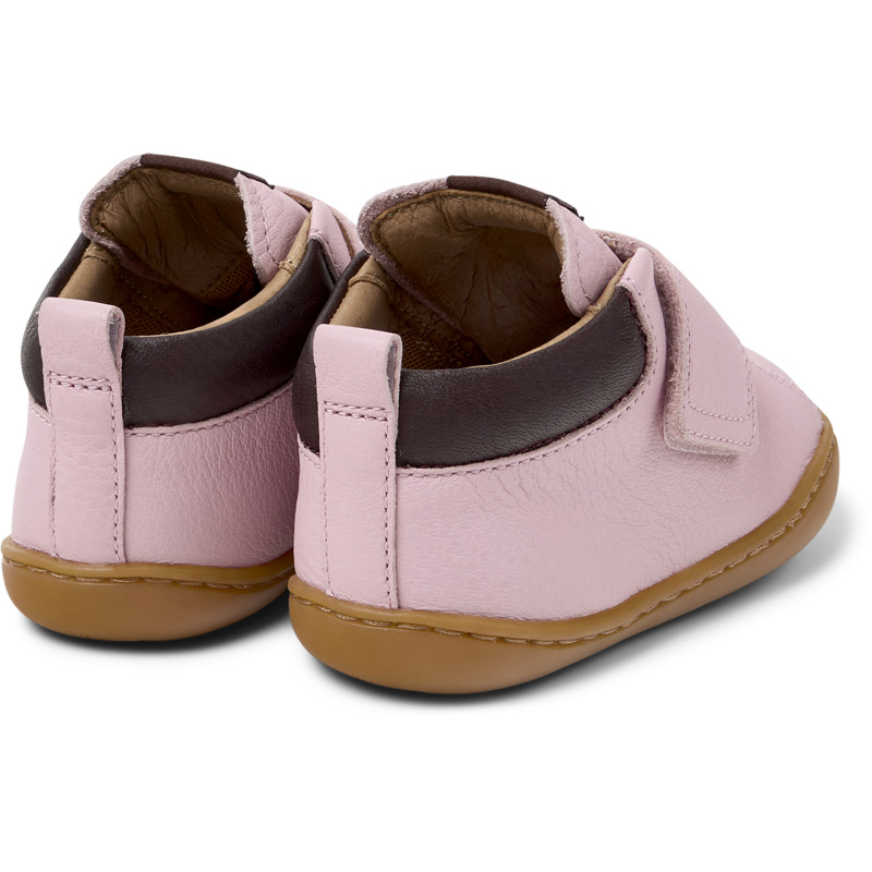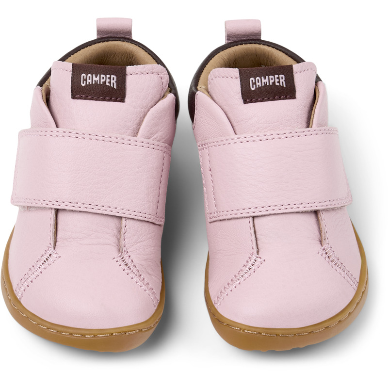 CAMPER - Rosa-rote Kinderstiefeletten aus Rindsleder mit herausnehmbarem EVA-Fußbett, Klettverschluss und Laufsohle aus recyceltem Gummi (20% Recyclinganteil).