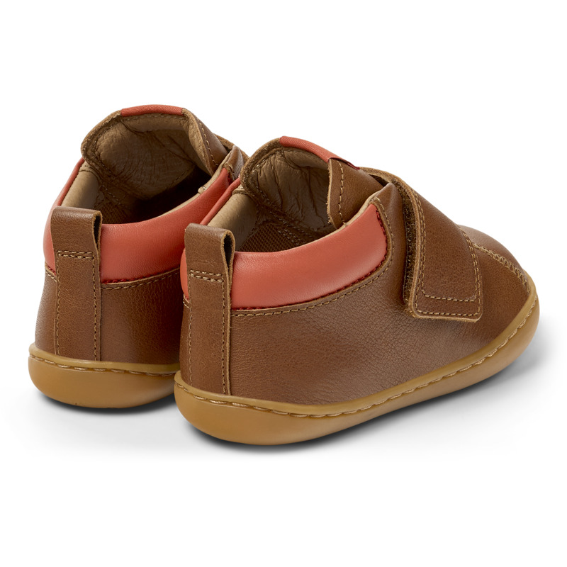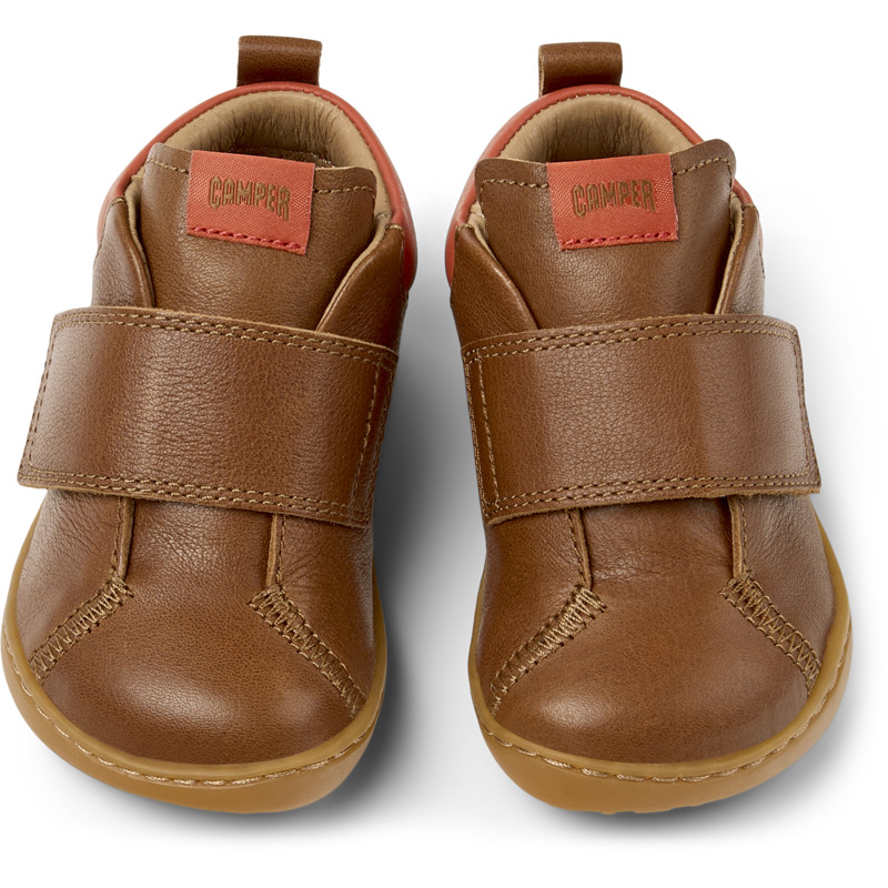 CAMPER - Braun-orange Kinderstiefeletten aus Rindsleder mit herausnehmbarem EVA-Fußbett, Klettverschluss und Laufsohle aus recyceltem Gummi (20% Recyclinganteil).