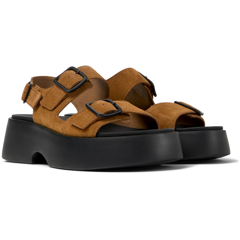 CAMPER - Brauner Damensandale aus Nubukleder mit EVA-Fußbett und XL EXTRALIGHT® EVA-Laufsohle.