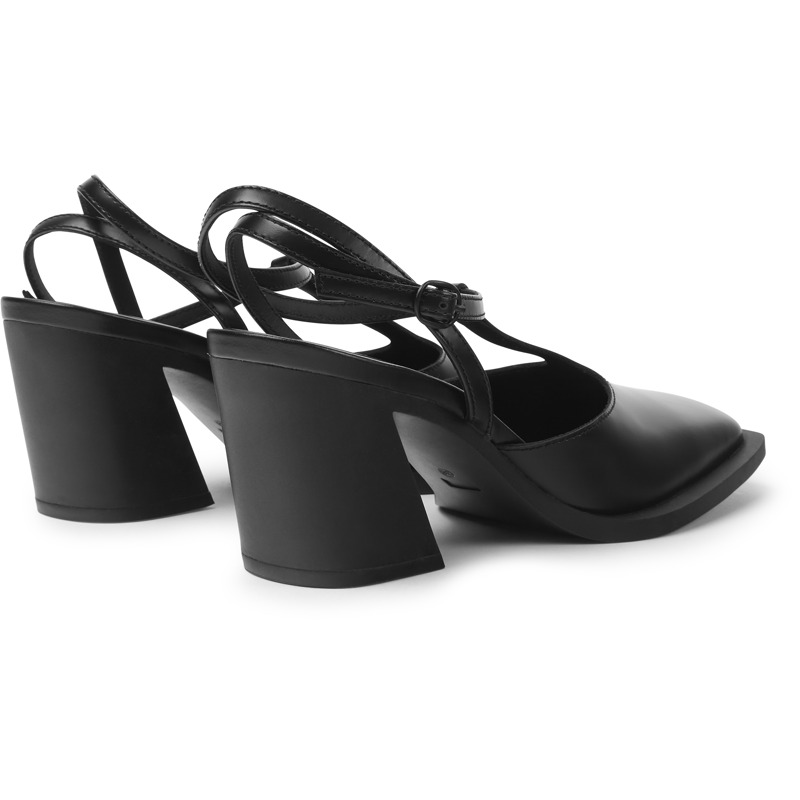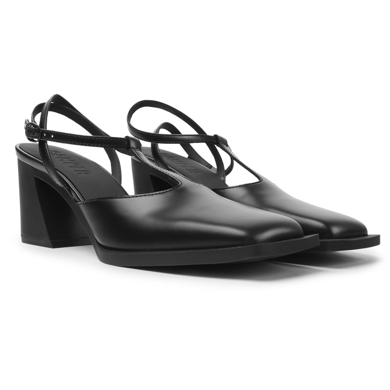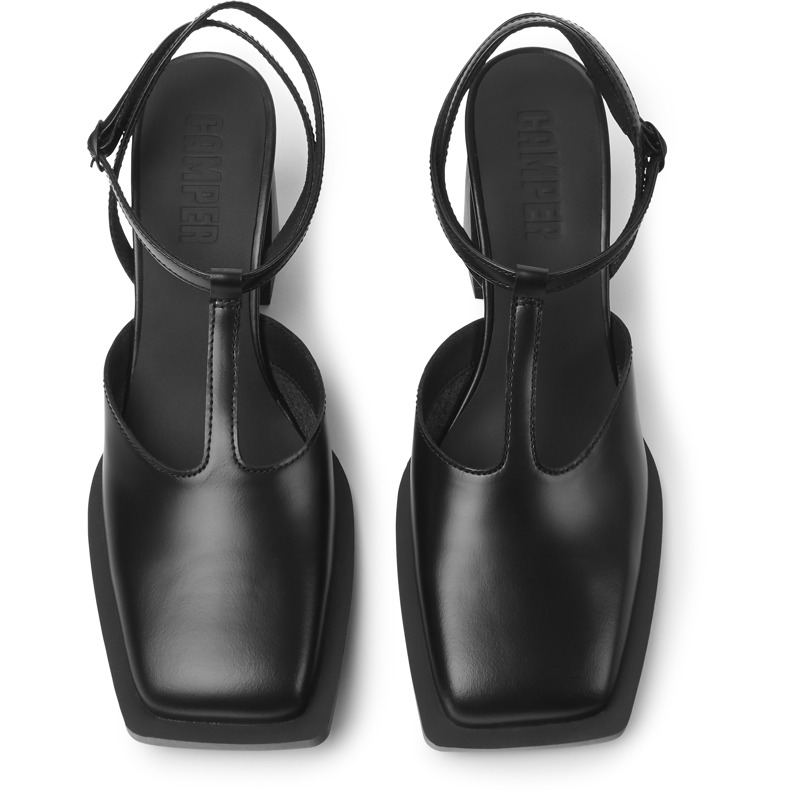 CAMPER - Schwarzer Damenschuh mit T-Steg aus Leder mit einer Laufsohle aus Gummi (20% Recyclinganteil).