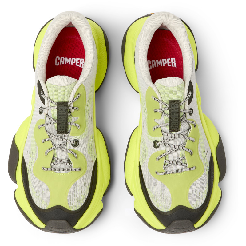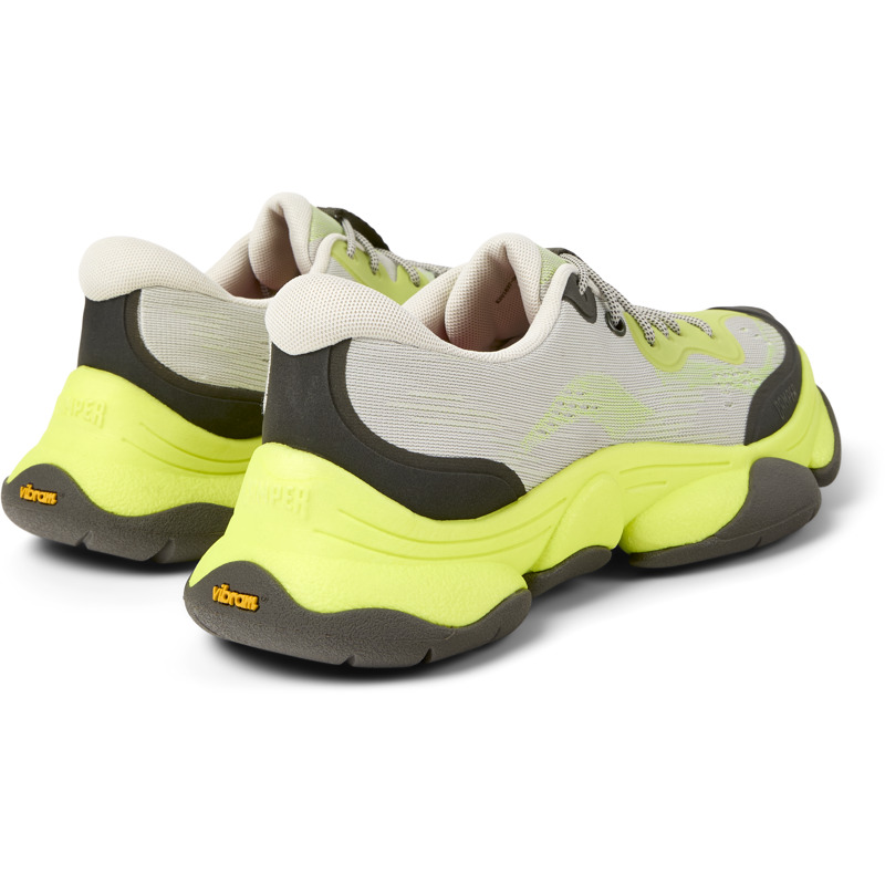 CAMPER - Graue und grüne Damensneaker aus recyceltem Polyester mit OrthoLite® Recycled™-Fußbett, ReXarge-Zwischensohle und Vibram Ecostep-Laufsohle (30% Recyclinganteil).