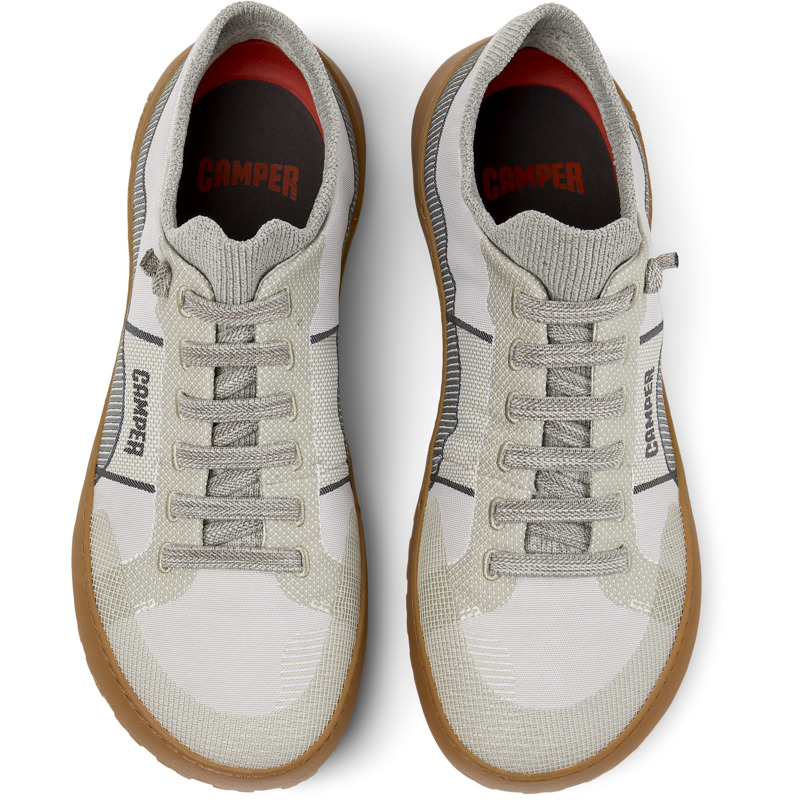 CAMPER - Herrensneaker aus Funktionsmaterial in Grau und Weiß mit bequemem Einsatz, Herausnehmbares EVA-Fußbett, elastischen Schnürsenkeln und Vibram Ecostep-Laufsohle (30% Recyclinganteil).