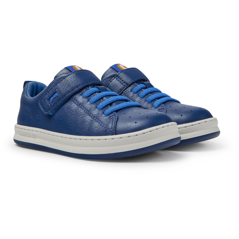 CAMPER - Sneakers azules de piel para niños con cordones elásticos, sistema de autocierre y suelas 100% goma.