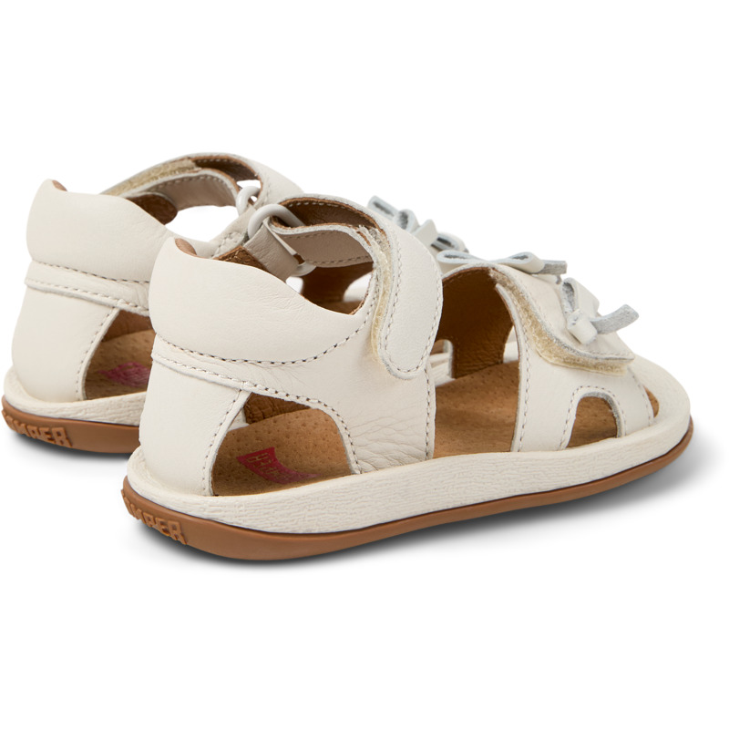 CAMPER - Sandalia blanca de piel para niños con autocierre y suelas de goma (20% reciclada).