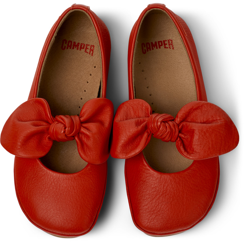 CAMPER - Bailarina infantil roja de piel con plantilla de EVA y suelas de goma reciclada (20% reciclada).