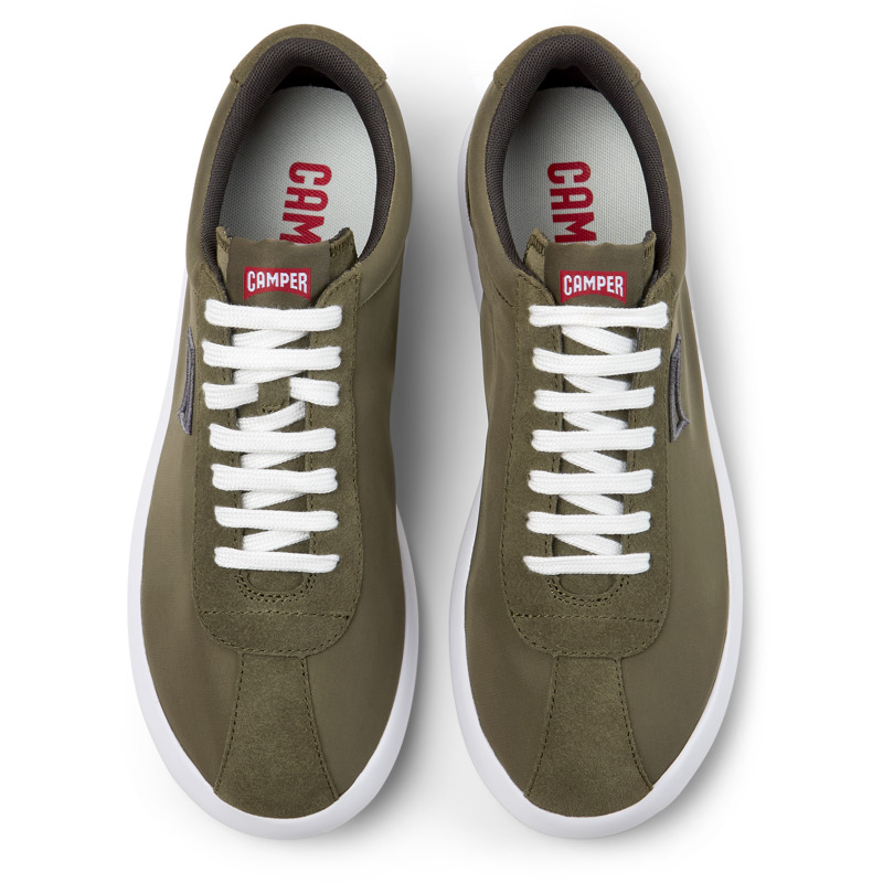 CAMPER - Baskets vertes pour homme en PET recyclé et nubuck avec une semelle intérieure en PU et une semelle extérieure en EVA.