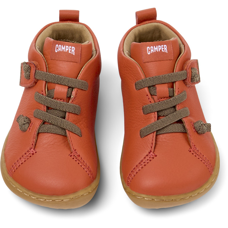 CAMPER - Orange calfskin leather kids' ankle boots with EVA removable footbeds, elastic laces, and hook and loop system and recycled rubber outsoles (20% recycled).