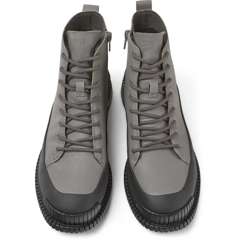 CAMPER - Gray and black leather lace-up women's boots with OrthoLite® Recycled™ footbeds and EVA outsoles.