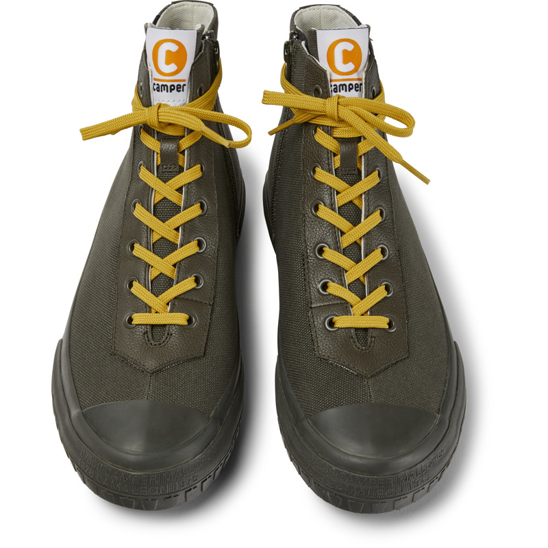 CAMPER - Green BCI certified cotton canvas men's boots with 23% recycled rubber and 40% natural rubber outsoles.