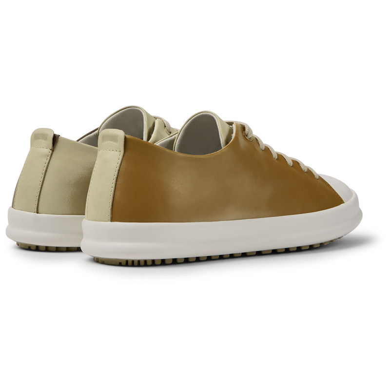 CAMPER - Beige and brown leather men's shoes with 100% rubber outsoles.