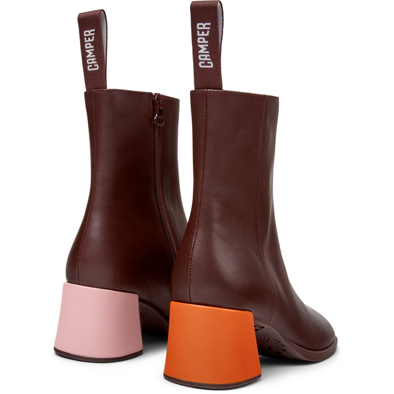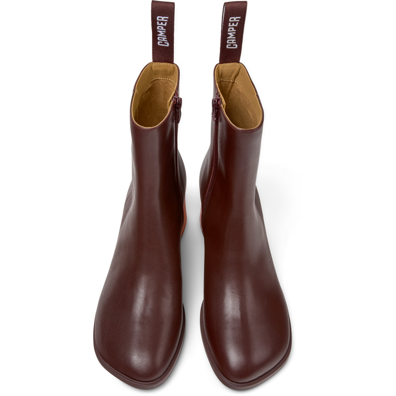 CAMPER - Burgundy calfskin leather mid boots for women with OrthoLite® Recycled™ footbeds and rubber and ABS outsoles.