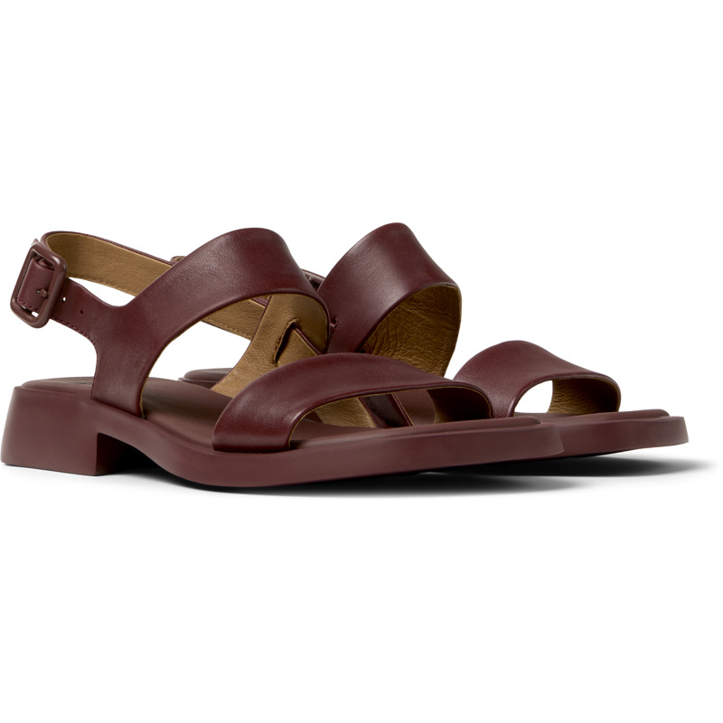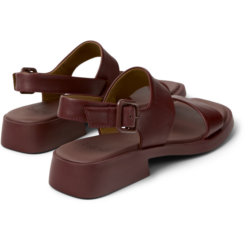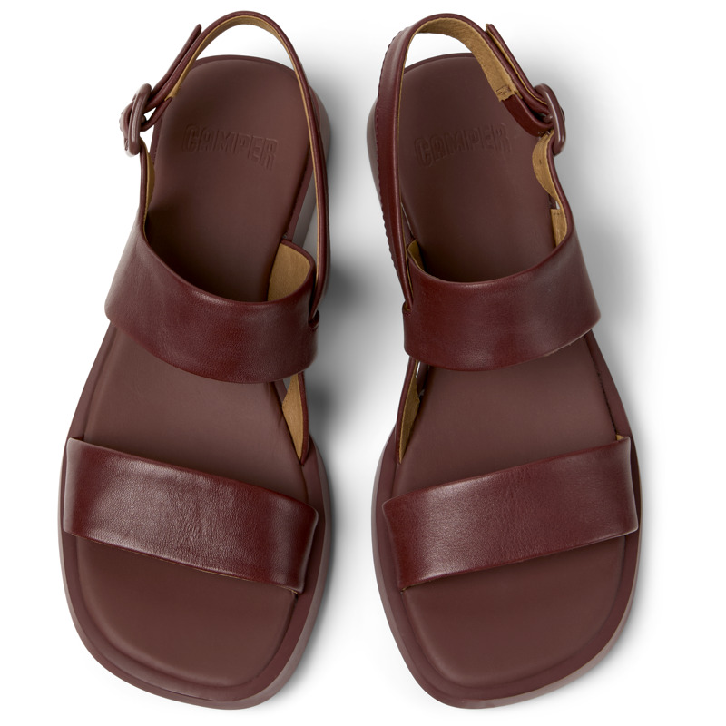 CAMPER - Burgundy calfskin sandals for women with non-removable OrthoLite® Recycled™ footbeds and XL EXTRALIGHT® EVA outsoles.