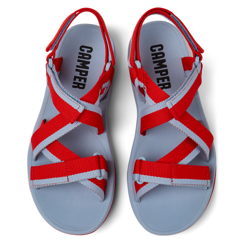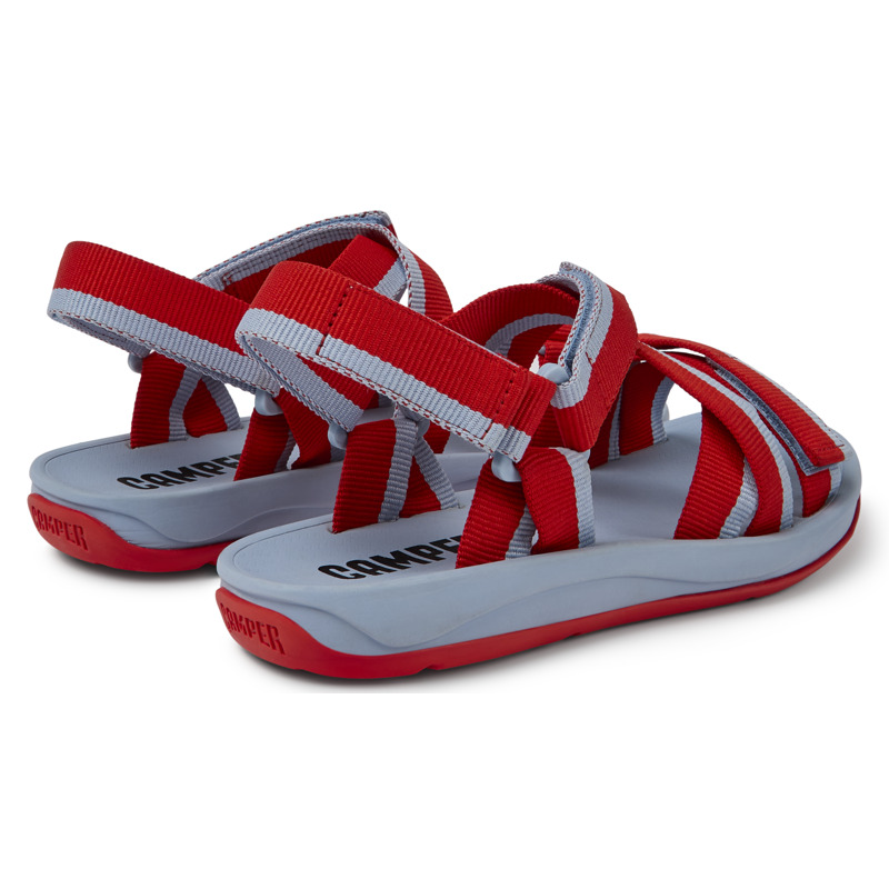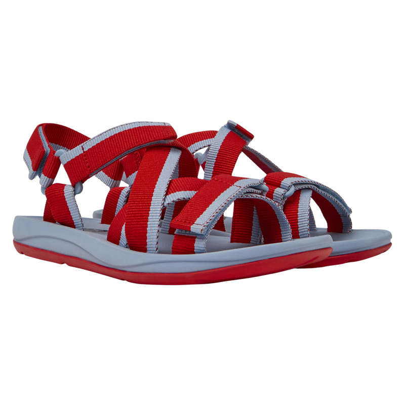 CAMPER - Red and blue men's sandals with 100% recycled PET straps, EVA outsoles, and a hook-and-loop closing system.