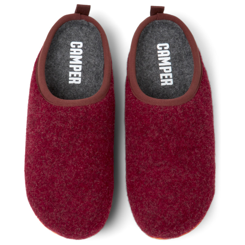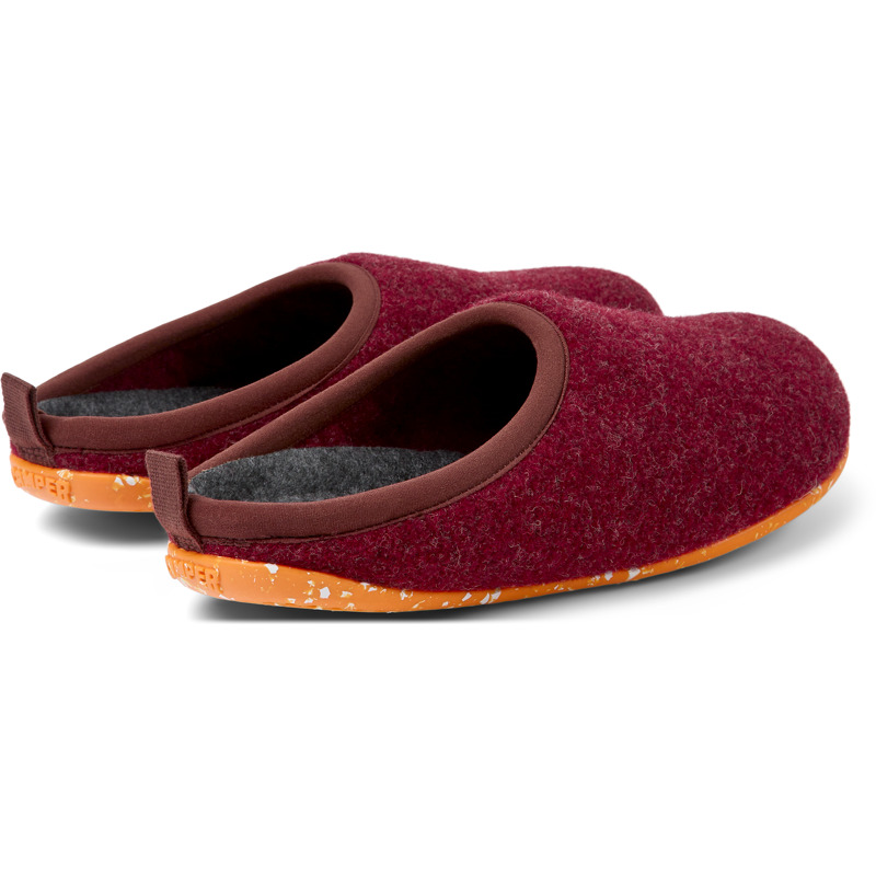 CAMPER - Burgundy wool women's slippers with EVA footbeds and rubber outsoles.