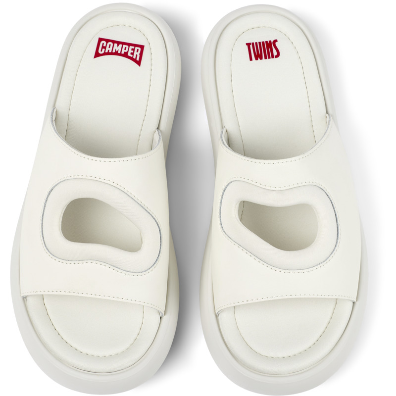 CAMPER - White leather/textile men's slides with EVA footbeds, and XL EXTRALIGHT® Organix™ 3.0 outsoles with 30% biocircular components.