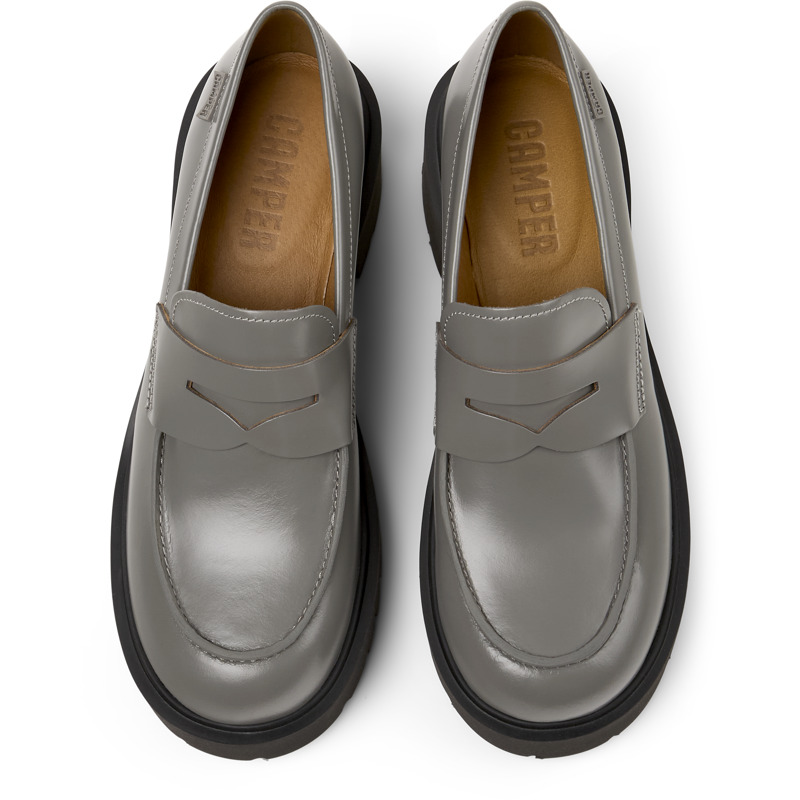 CAMPER - Gray leather women's loafers with EVA outsoles.