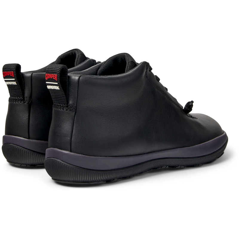 CAMPER - Black leather women's ankle boots with GORE-TEX sustainable membrane, OrthoLite® Recycled™ footbeds and 27% natural rubber Michelin outsoles.
