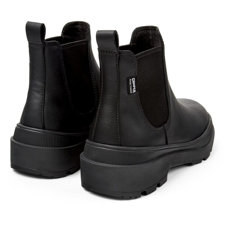 CAMPER - Black leather women's ankle boots with waterproof HYDROSHIELD® membranes, OrthoLite® Recycled™ footbeds, and Michelin rubber outsoles (27% natural).