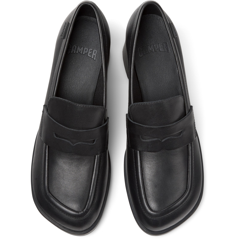 CAMPER - Black calfskin leather moccasins for women with OrthoLite® Recycled™ footbeds and rubber and ABS outsoles.
