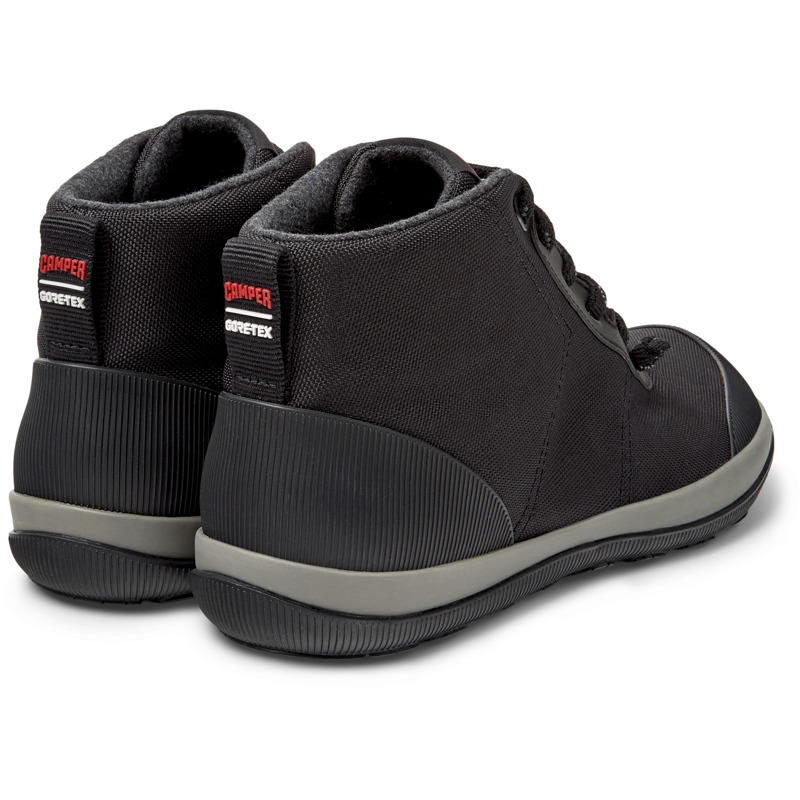 CAMPER - Black textile men's ankle boots with GORE-TEX technology, OrthoLite® Recycled footbed, elastic laces, EVA midsole, and rubber outsoles (27% natural).