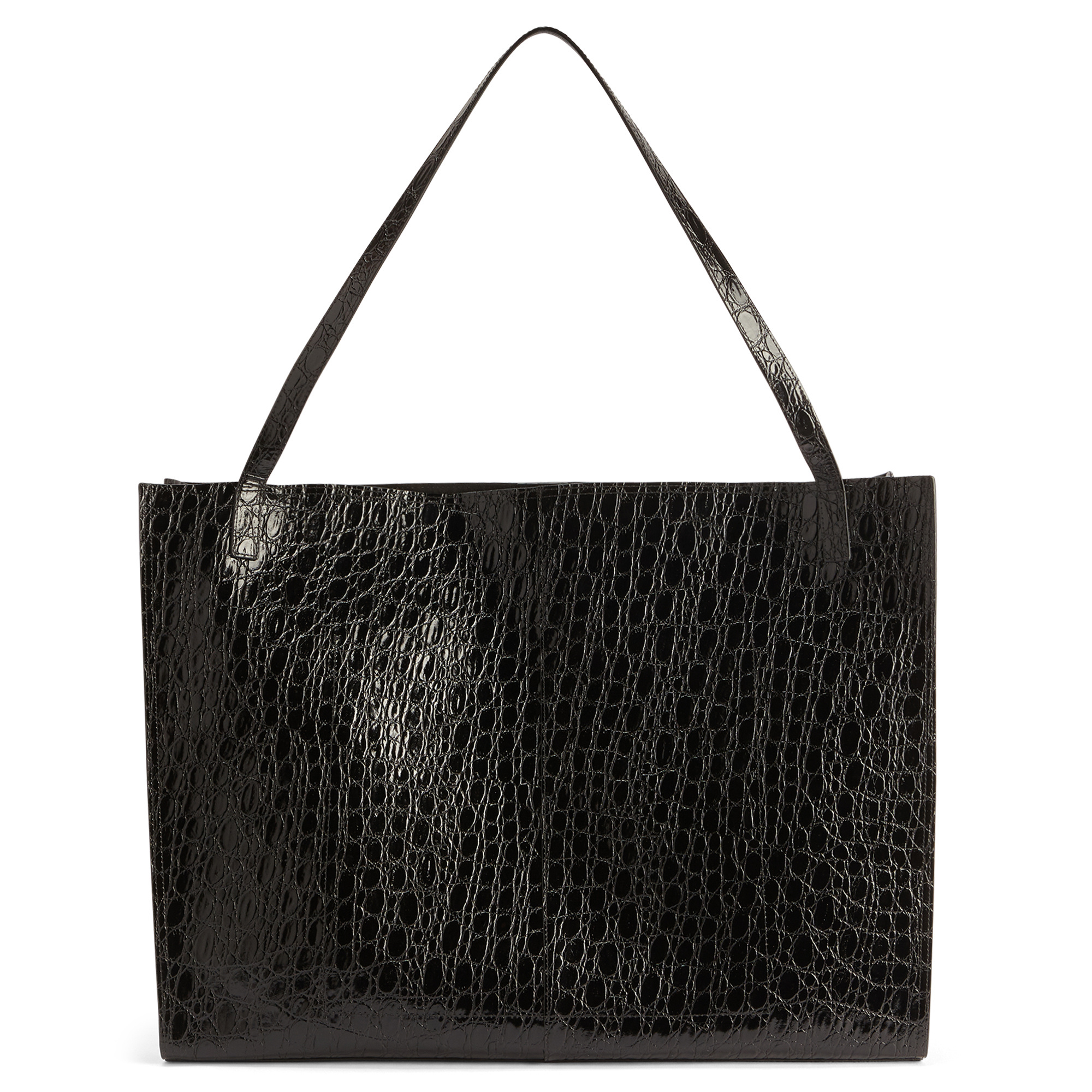 Large tote bag in crocodile-print leather with snap fastenings and an inside pocket.