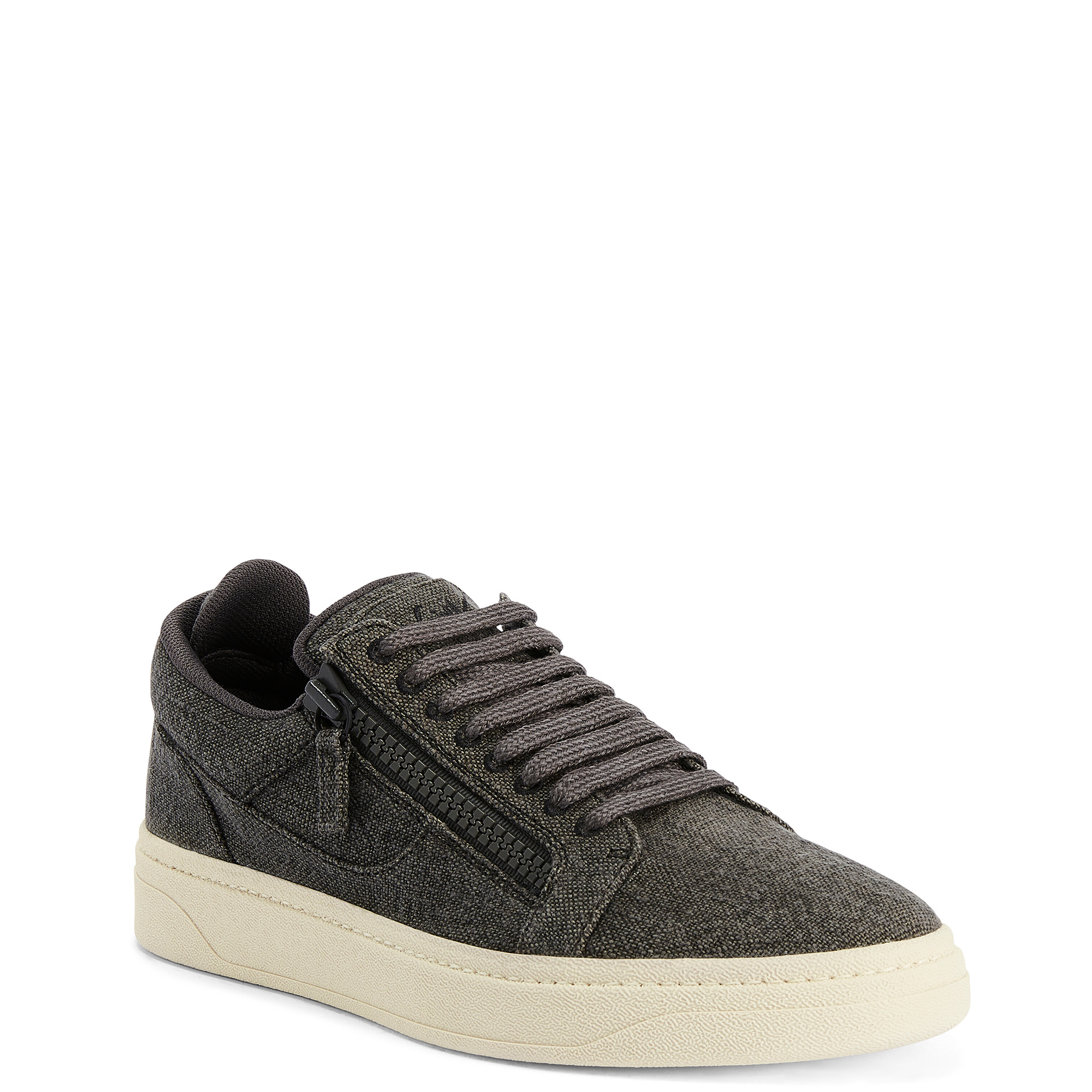 Low-top lace-up sneakers in linen fabric with two tonal side zips and rubber sole.