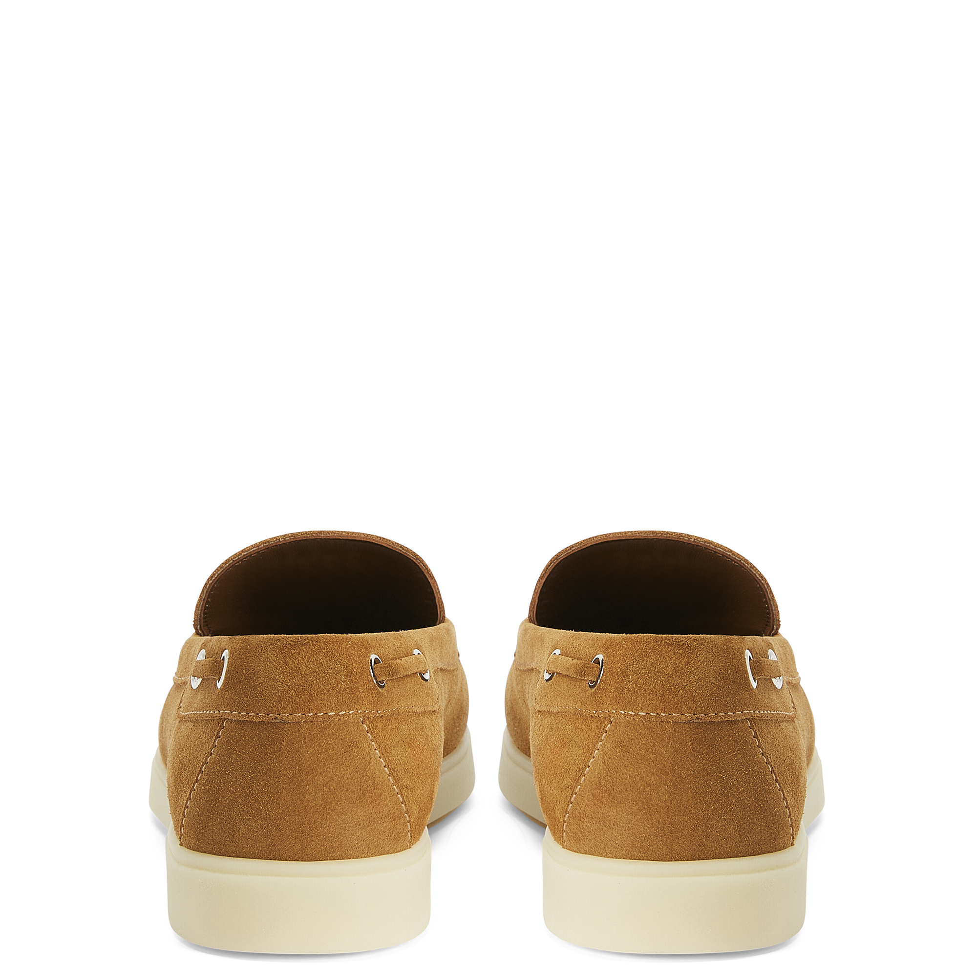 Suede moccasins with threading, suede tassels with metal detail and rubber sole.