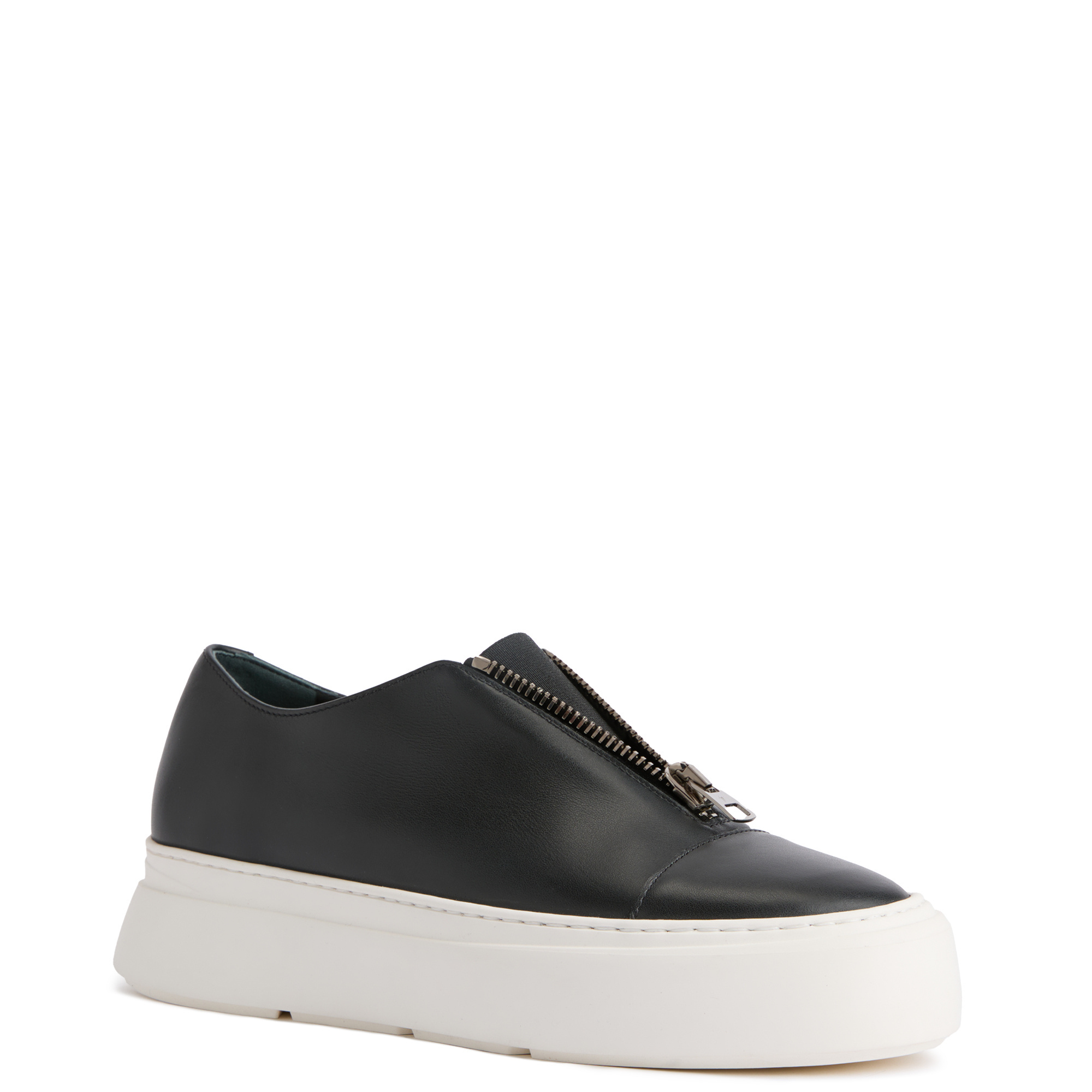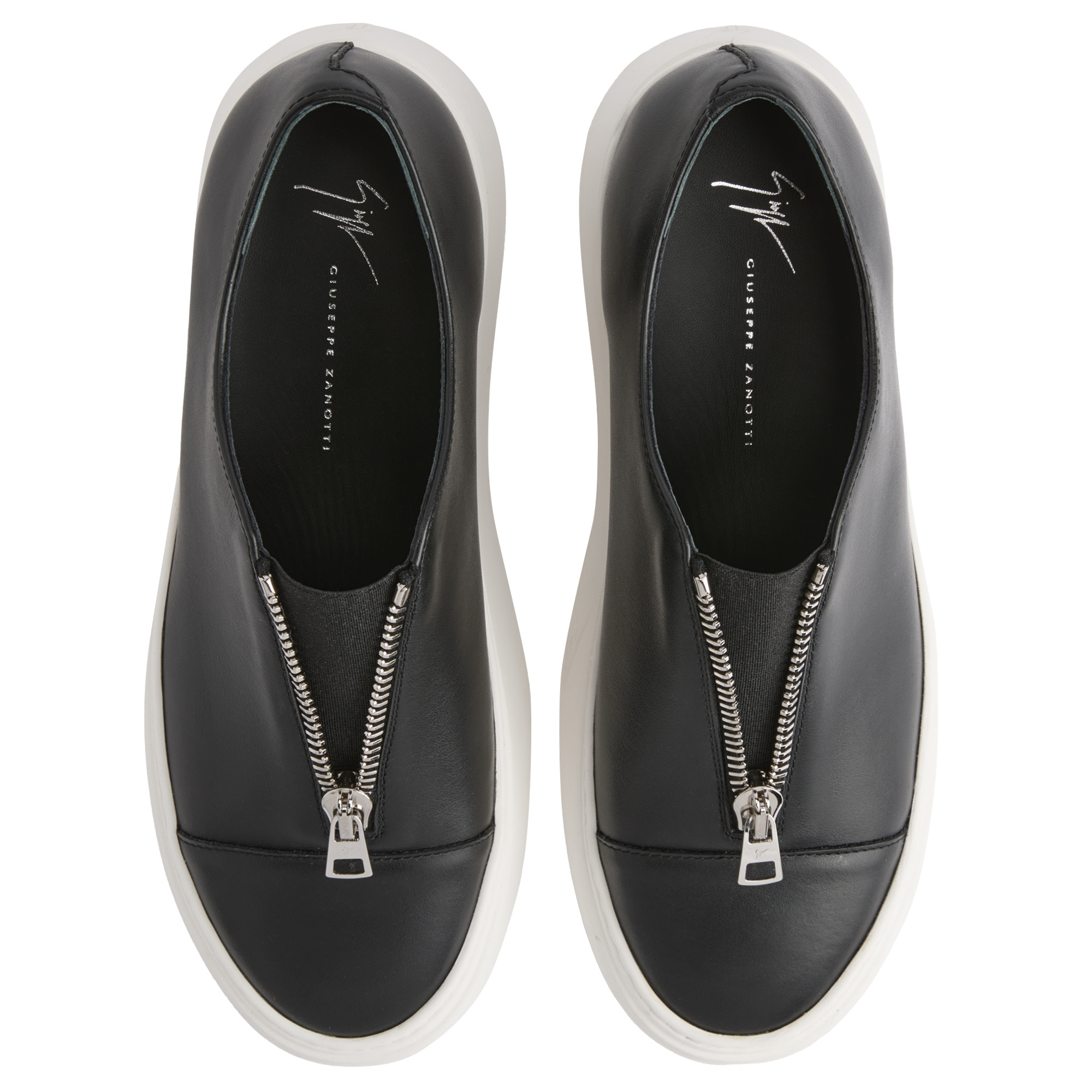 Leather slip-ons with central zipper, elastic insert and rubber sole.