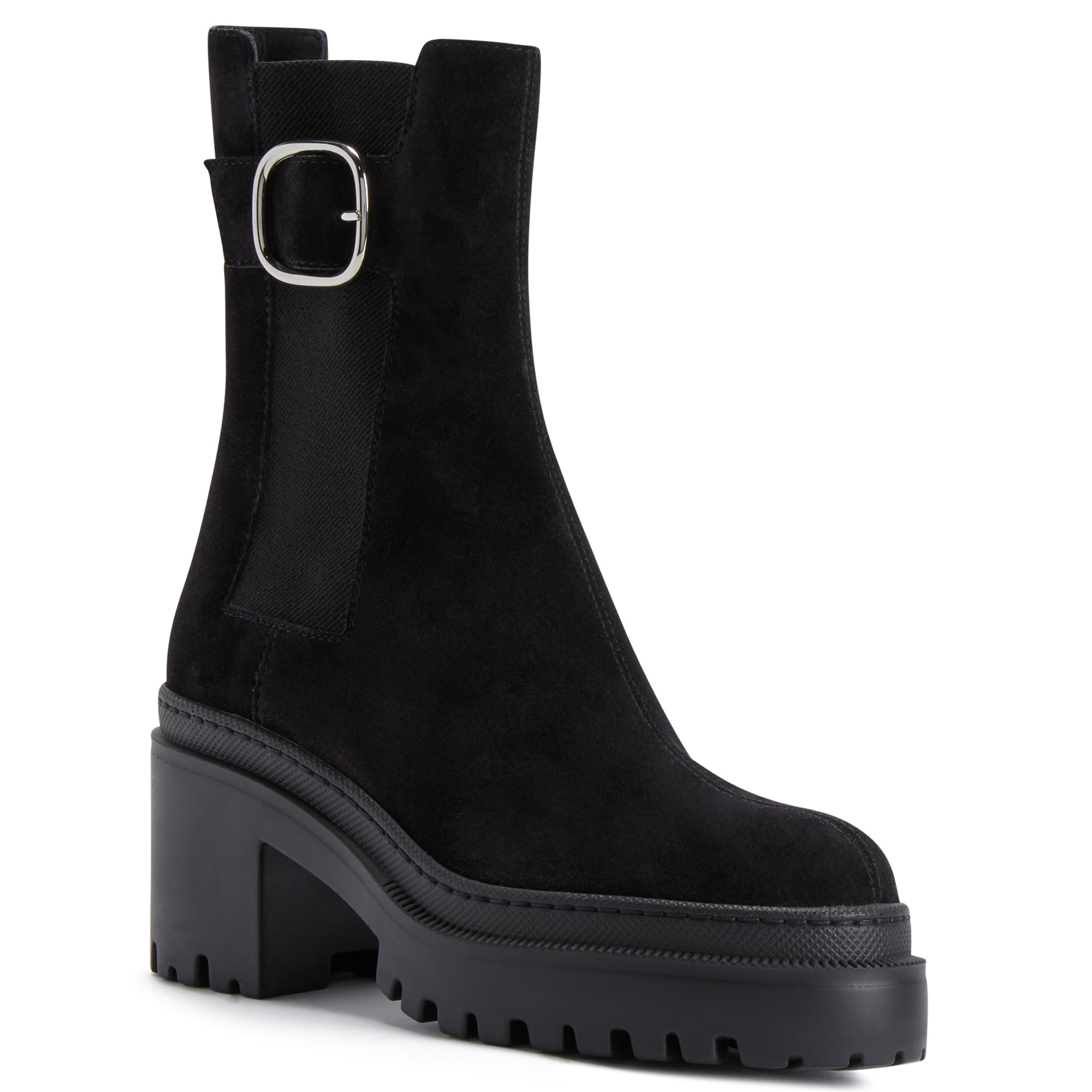 Chelsea boots with tone-on-tone elastic insert, decorative buckle and rubber sole.