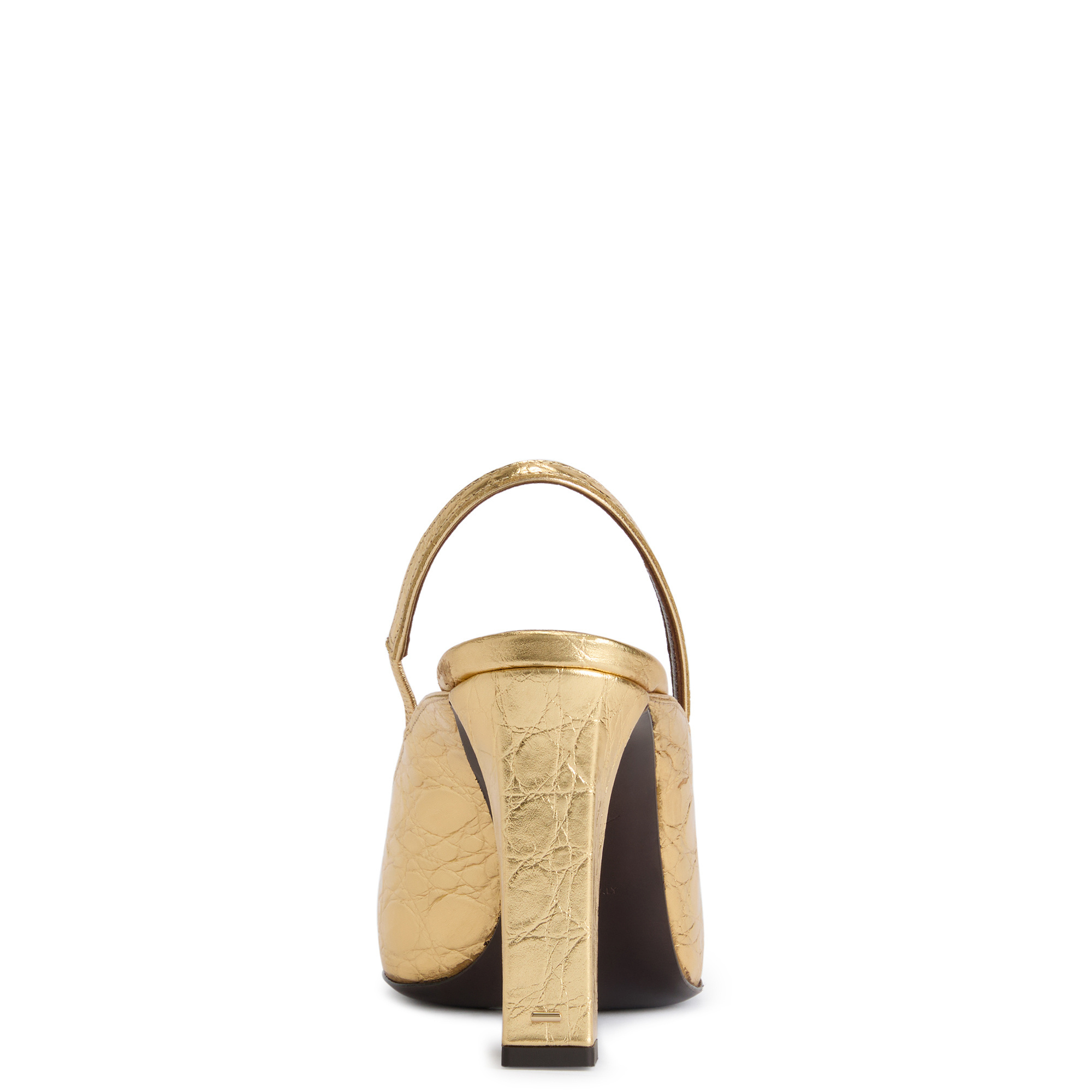 Slingback pumps in crocodile-print leather with square toe and topline, rear strap with elastic insert, and kitten heel with metal stitch detail.