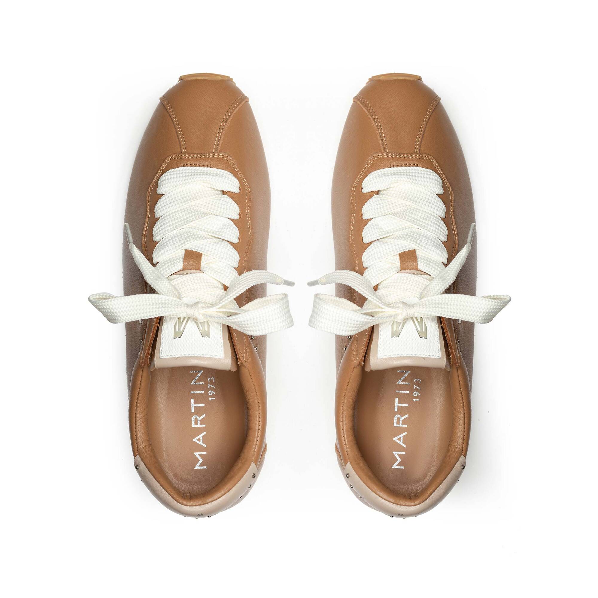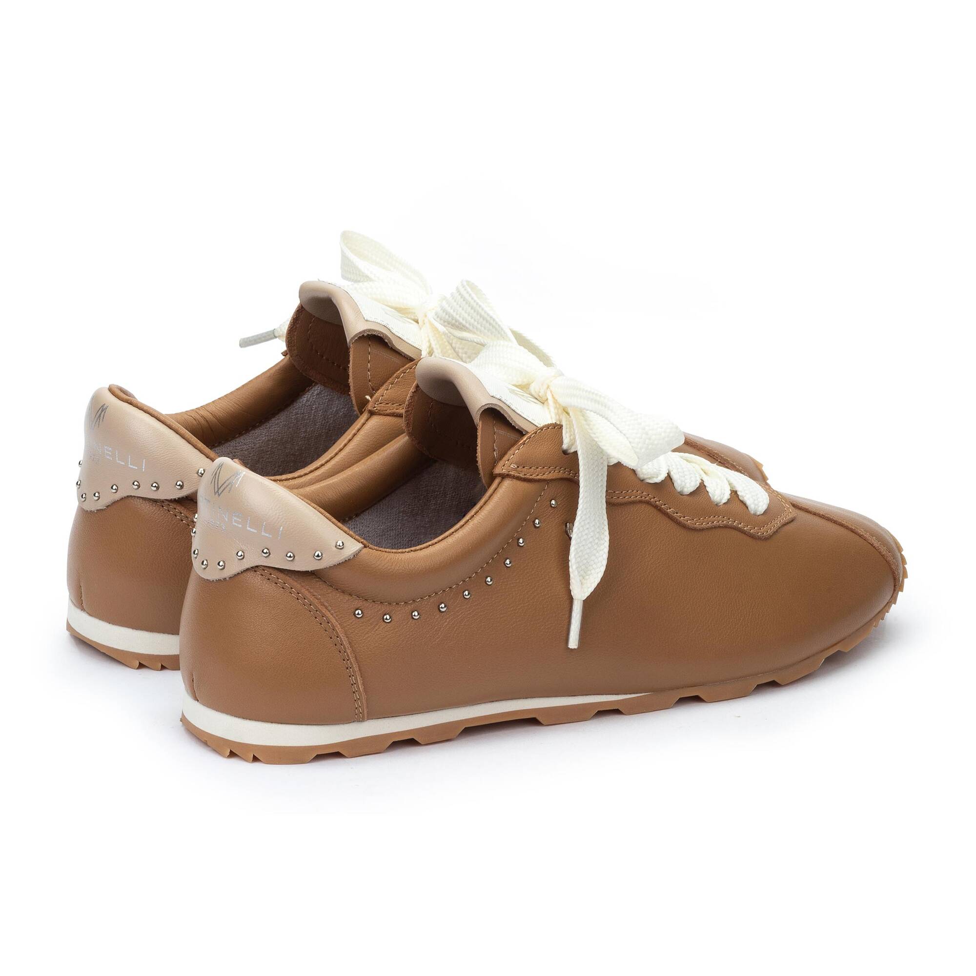 Deportivo de piel con tachas y punta redonda; tacón plano de 2 cm.